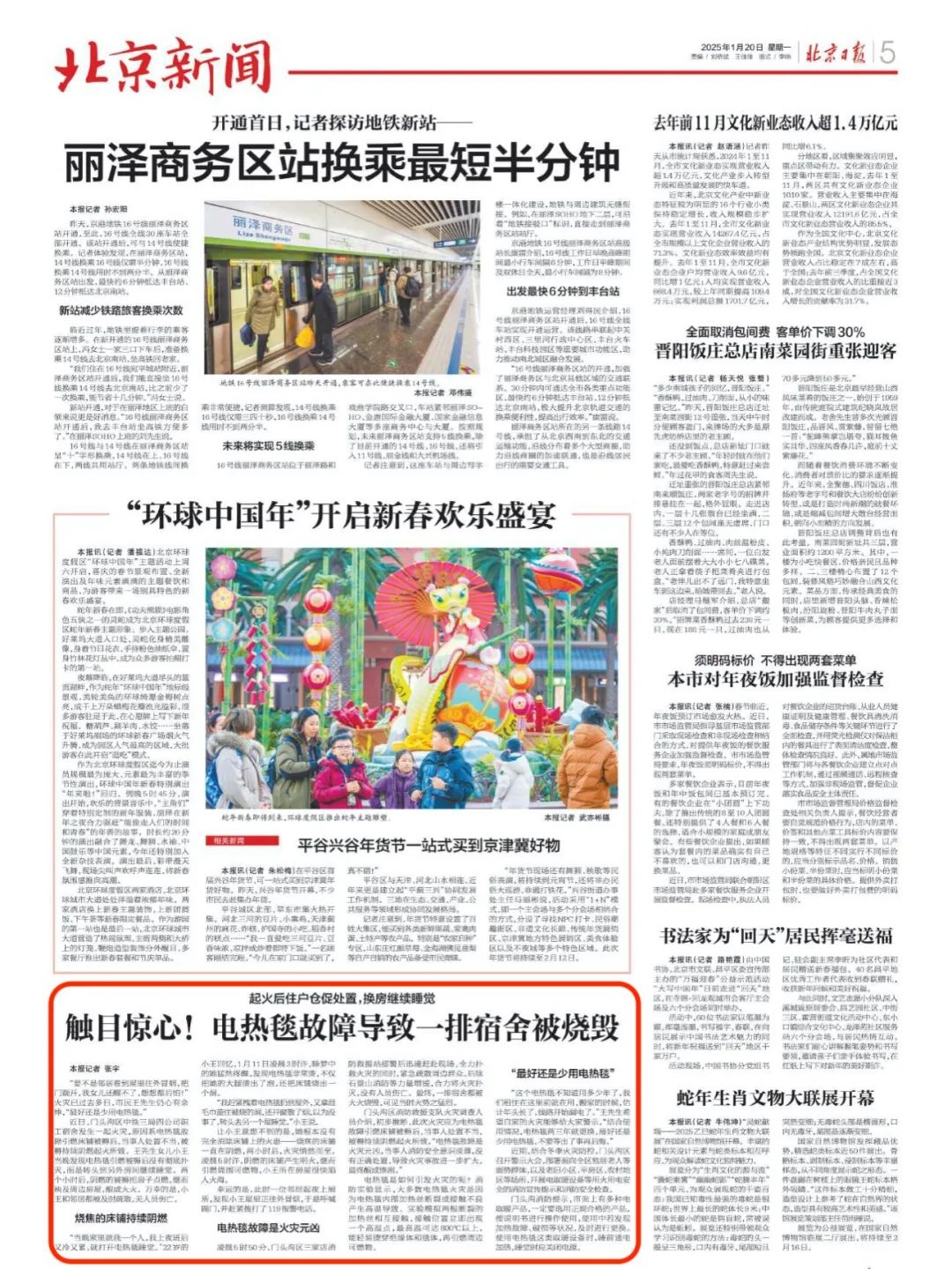 1月20日,北京日?qǐng)?bào)報(bào)道新聞《觸目驚心!電熱毯故障導(dǎo)致一排宿舍被燒毀》。