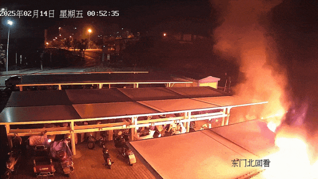 2月14日凌晨,江西省贛州龍南市一小區電動自行車棚騰起火光,火勢迅速蔓延。